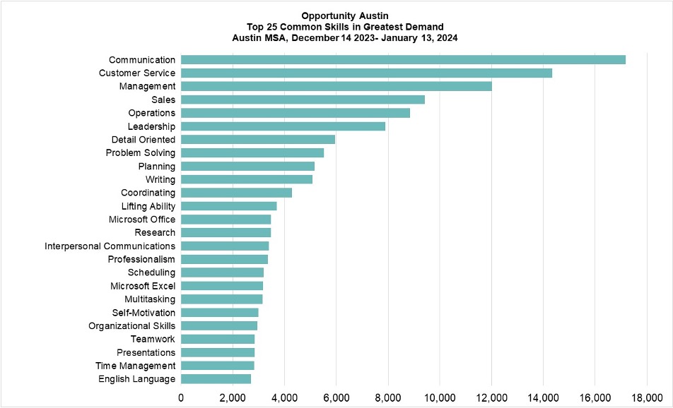 The following job market report is designed to provide insight into current employer demands, skills, and occupations in the Austin MSA.