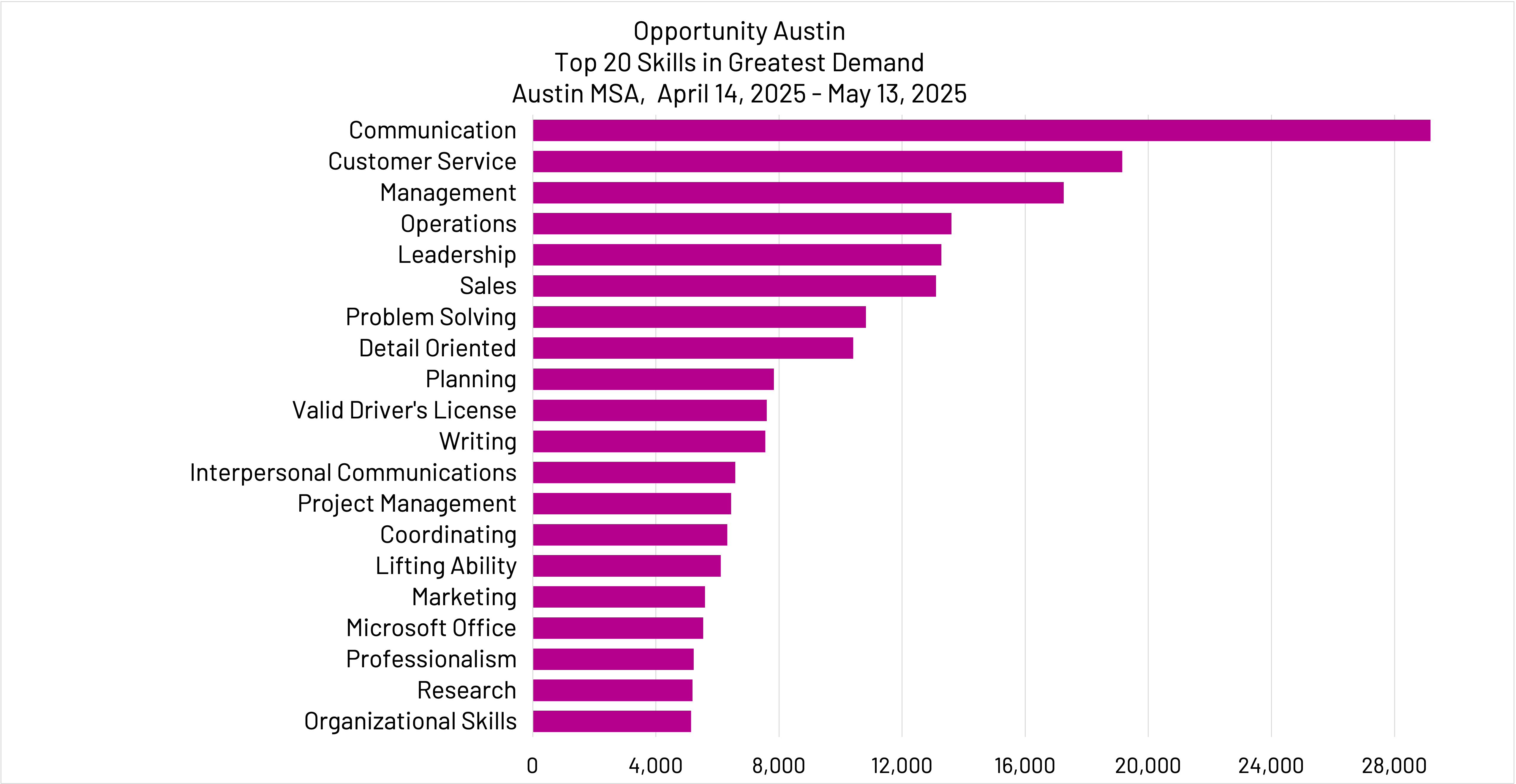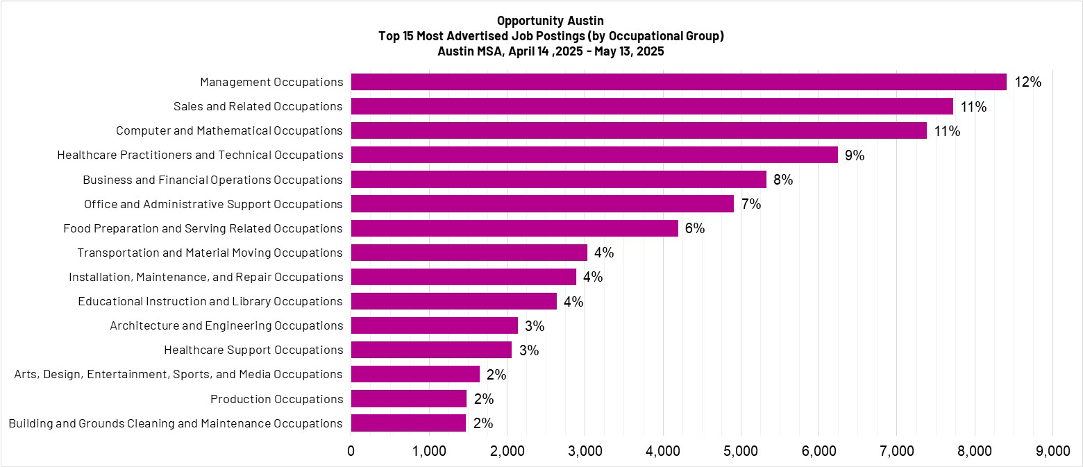 The following job market report is designed to provide insight into current employer demands, skills, and occupations in the Austin MSA.